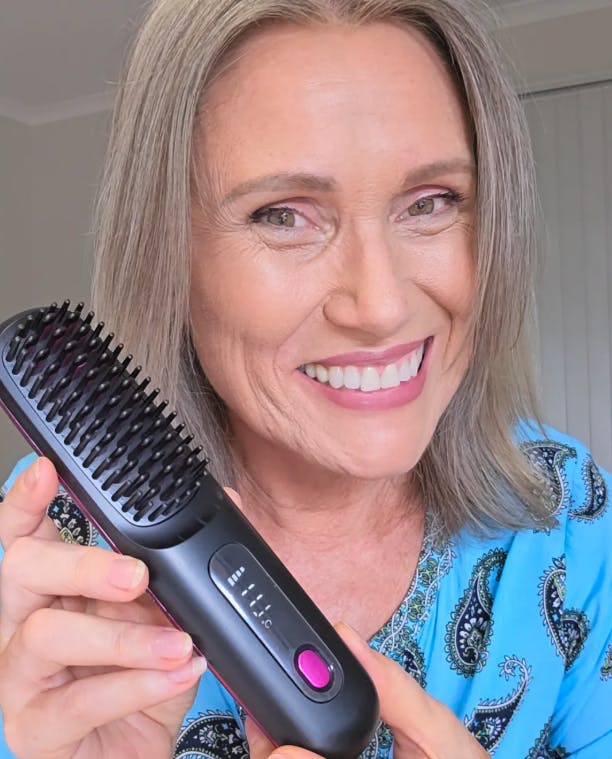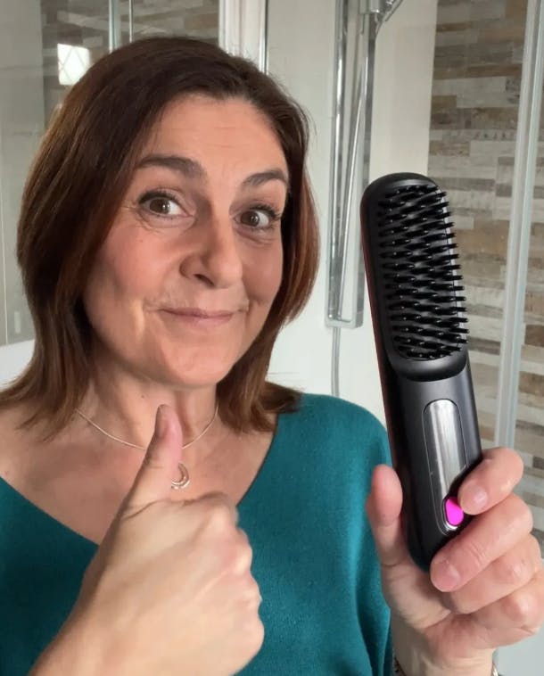 "Finalmente una spazzola che posso usare anche in macchina! In 5 minuti i miei capelli sono ordinati e lisci come dal parrucchiere. Non potrei più farne a meno."